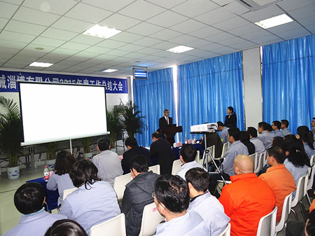 大會由公司副總經理姜作棟先生主持,公司總經理王正軍先生與大家共同分享了公司2015年經營成果并對2016年的工作計劃為大家作了說明。